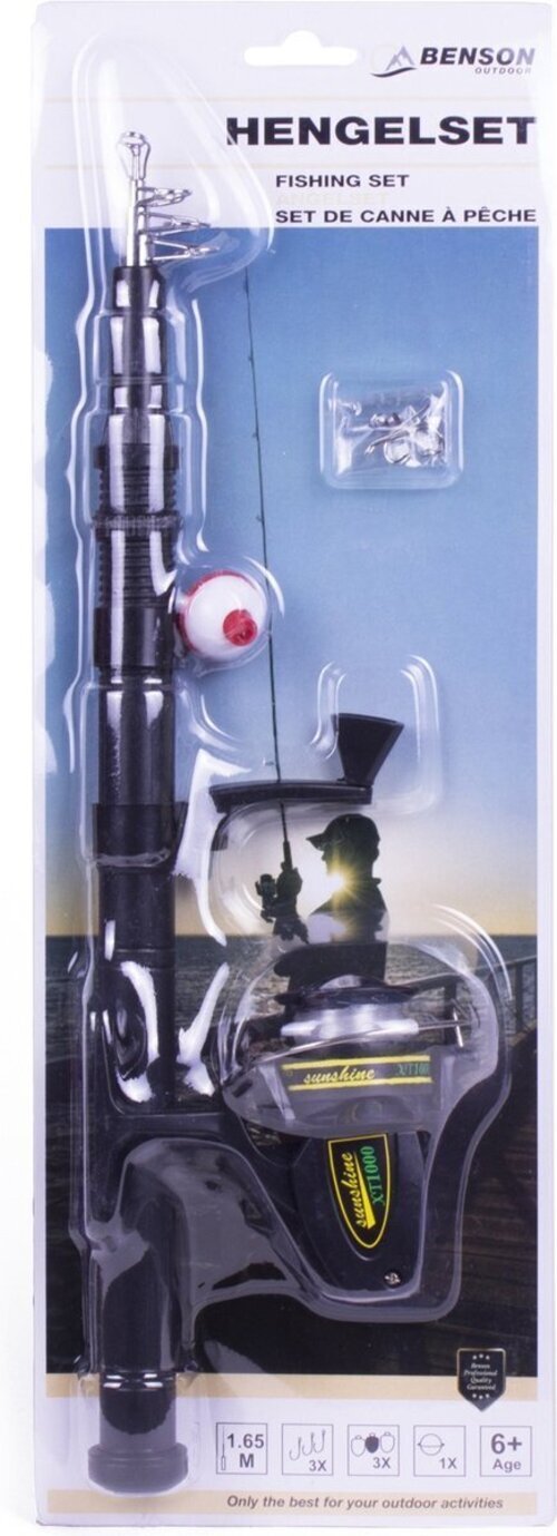 Mit dem kompletten Angelset von Benson bist du startklar für deinen nächsten Angeltrip! Die 1,65 m lange Teleskoprute ist ideal für Kinder, Anfänger oder Gelegenheitsangler – und passt dank kompaktem Packmaß von nur 40 cm bequem in den Rucksack oder Kofferraum.