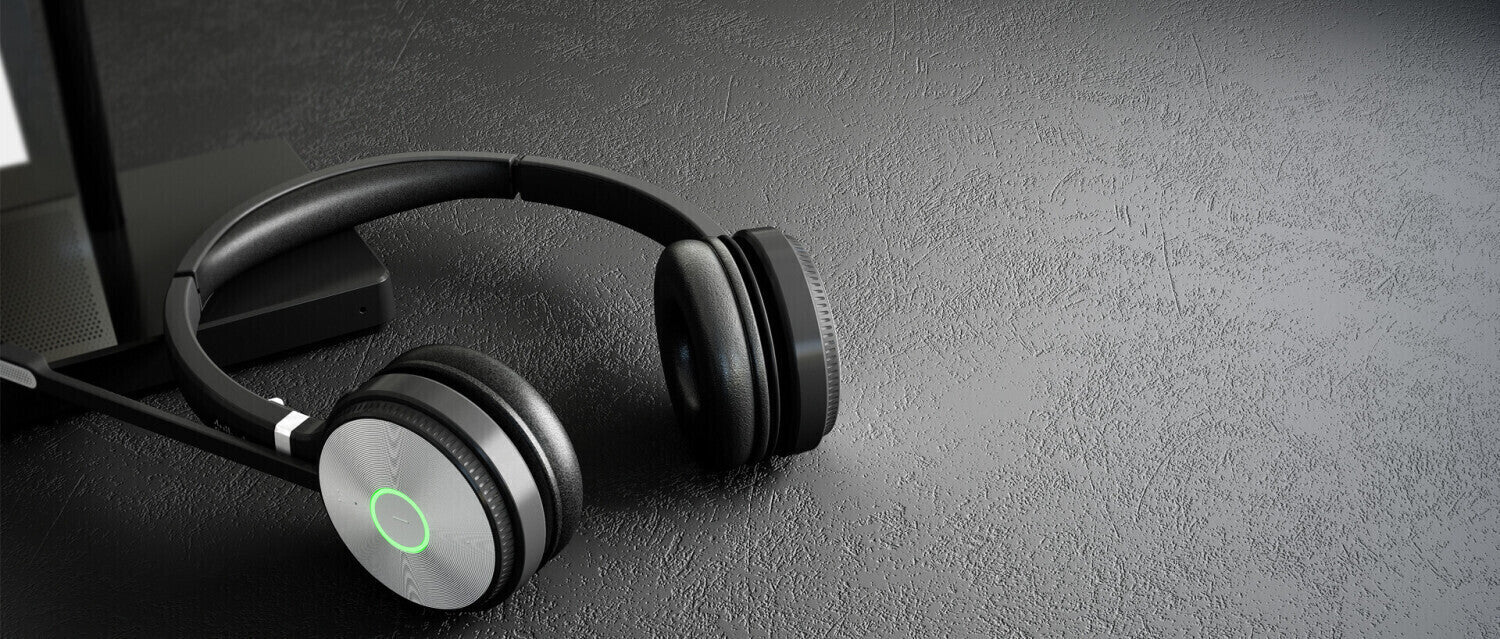 Das ohraufliegende Doppel-Headset sitzt leicht und sicher. Der verstellbare Kopfbügel und die weichen Ohrpolster sorgen für hohen Tragekomfort – auch bei stundenlangen Meetings.